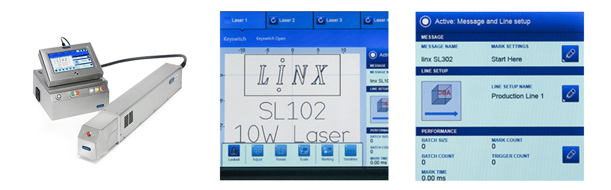 • Linx SL 激光打码机配有全新的 LinxVision® 彩色触摸屏,使用方便