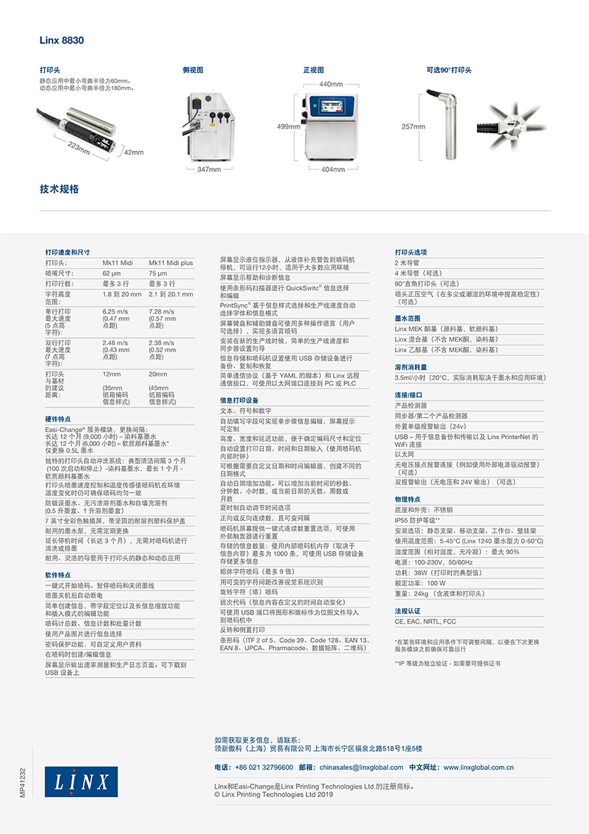 Linx8830喷码机